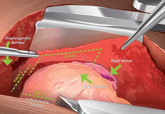 HPMA comprises structurally supportive extracellular matrix proteins like collagen and laminin, essential for withstanding the mechanical demands of cardiac procedures. The membrane is suitable for versatile epicardial placements on the right atrium, right ventricle, or left ventricle, seamlessly integrating into standard CABG workflows.